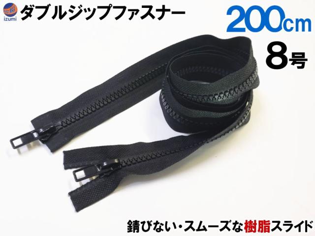ダブルジップファスナー (200cm 1本)【メール便 送料無料】 #8 ダブルジッパー 樹脂製 ダウンジャケット 修理