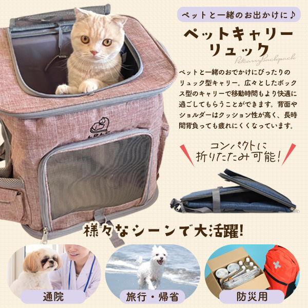 キャリーリュック 猫 犬 ペットキャリー ボックス型 広々快適 折りたたみ式 リュック型 キャリーハウス 通院 旅行 帰省 移動 避難 防災バッグ 折り畳める 鞄 お出かけ ペット用 リュックキャリー 子犬 小型犬 中型犬 猫 ねこ用 病院 外出 移動用バッグ 同行避難 防災グッズ