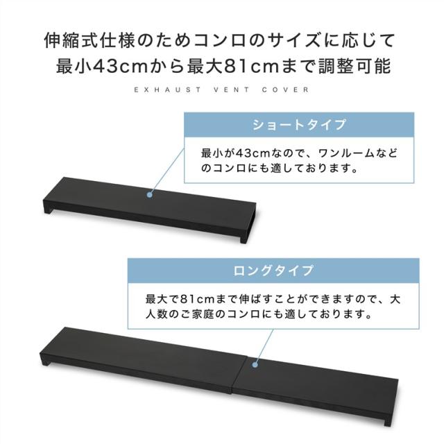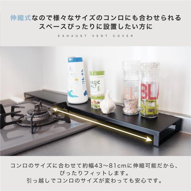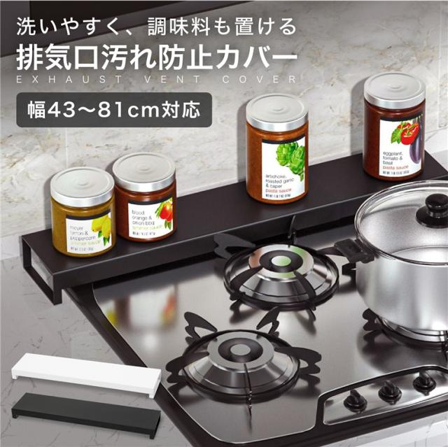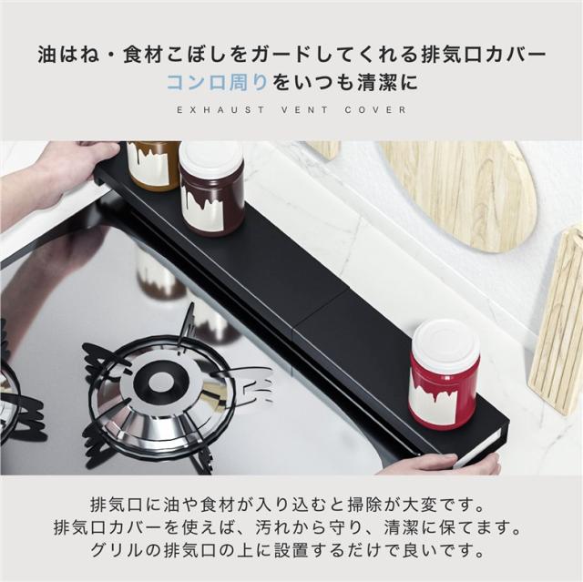 排気口カバー 排気口 グリル カバー 43〜81cmまで対応 伸縮式 ガスコンロ IHコンロ ビルトイン 汚れ防止 油はね 油汚れ 置くだけ スマート キッチン コンロ カバー フラット式 コンロ奥カバー キッチン レンジガード コンロガード ブラック ホワイト 白 黒