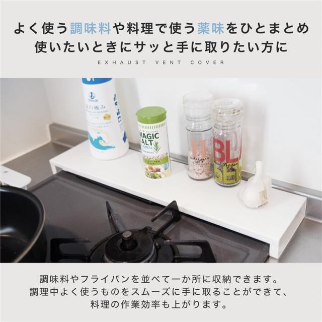 | SHINPUR 排気口カバー 43〜81cmまで対応 伸縮式 コンロ周りを汚れから守り、きれいに保ってくれるアイテム 伸縮式仕様なので、ワンルームから3LDKのコンロサイズまで最小43cm最大81cm対応が可能。 油はね・食材こぼしをガードしてくれることで、コンロ周りをいつも清潔に よく使う調味料や料理で使う薬味などをひとまとめで、使いたいときにさっと手に取れる 滑り止め付きで使用中のズレやガス台に傷をつけにくい |