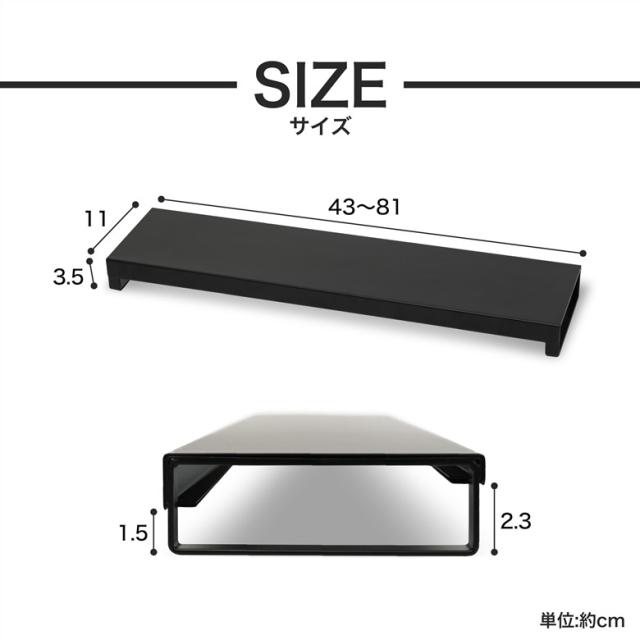 サイズ 本体:奥行き11cm * 高さ3.5cm * 幅43〜81cm