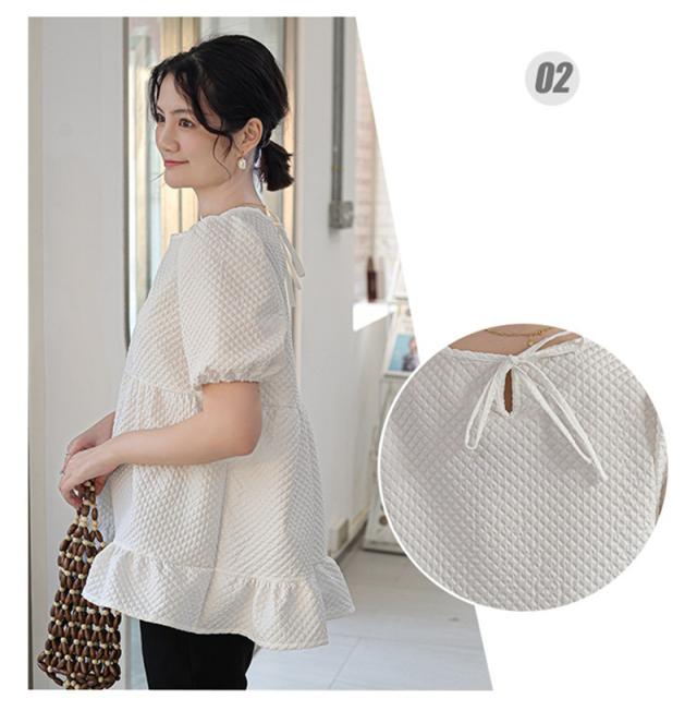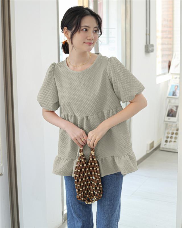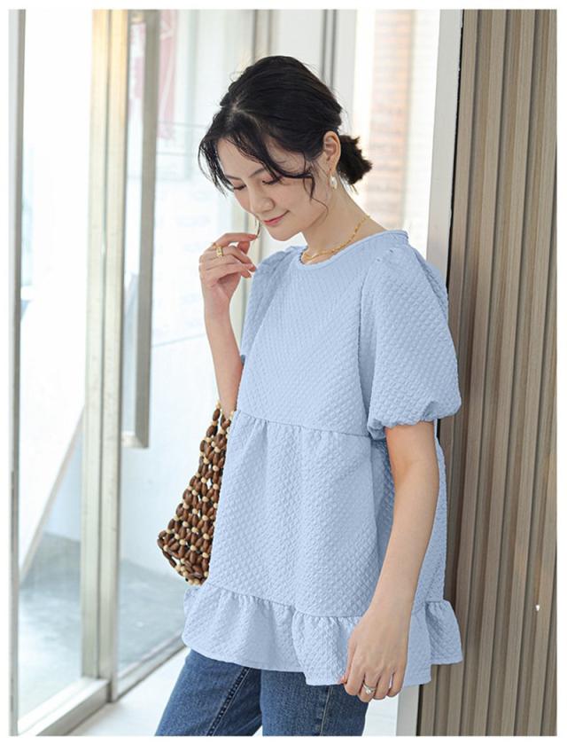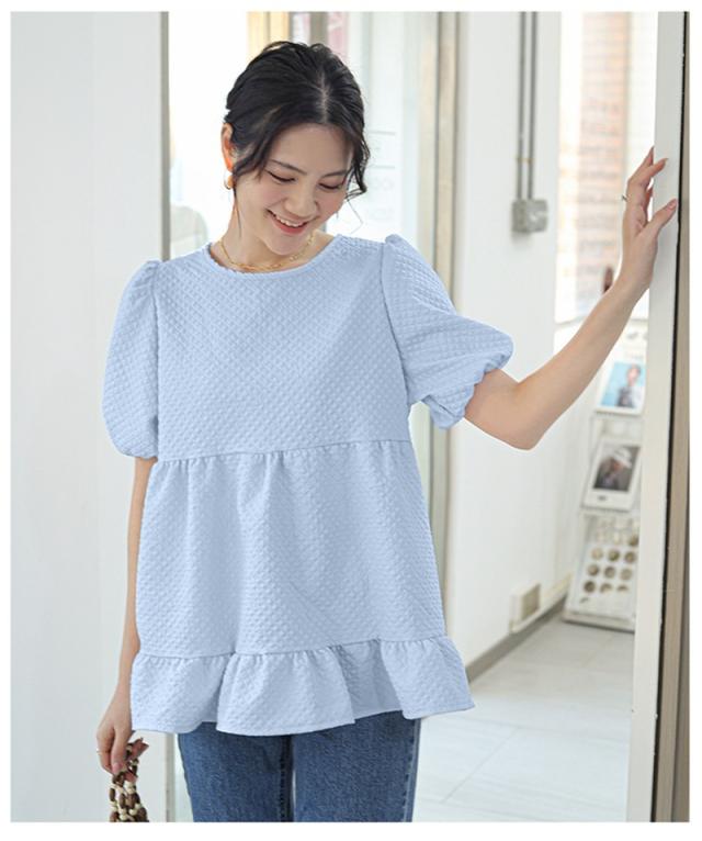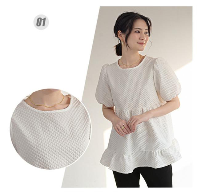 セール ブラウス 半袖 レディース シャツ トップス 切替 カットソー ぽわん袖 流行り 通勤 夏 Tシャツ ギャザー チュニック