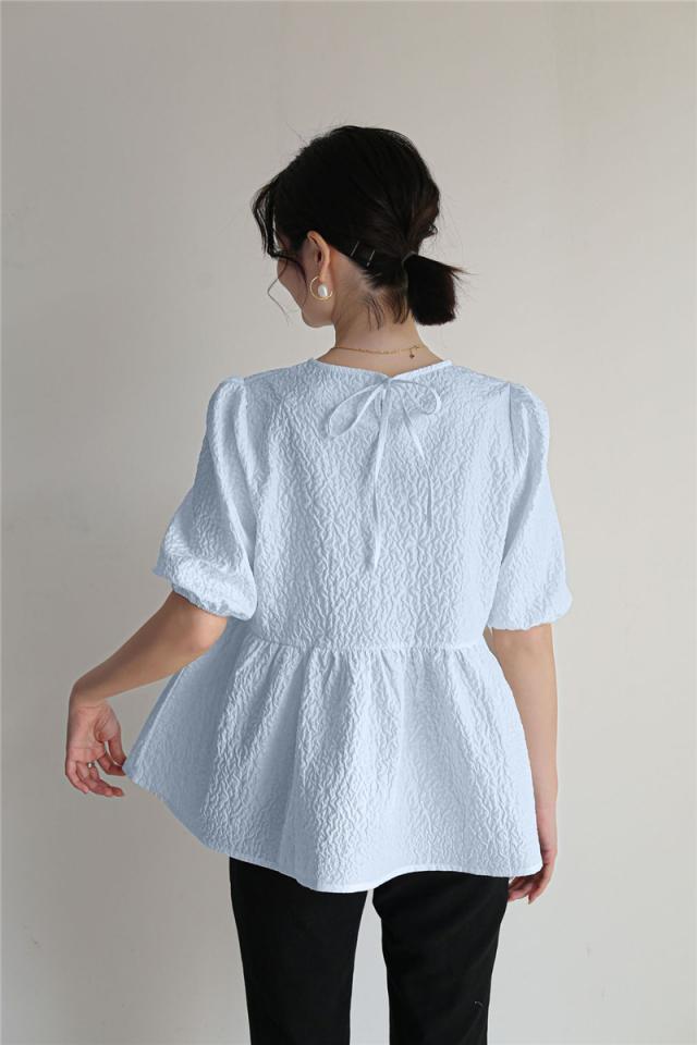 激安 ブラウス 半袖 レディース シャツ トップス 切替 ぽわん袖 カットソー 重ね着 流行り 夏 Tシャツ 柔らかい チュニック
