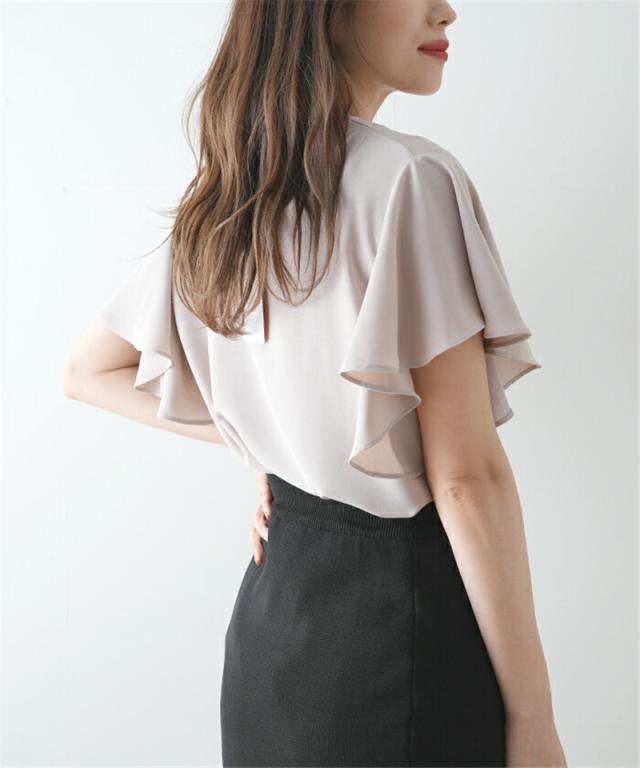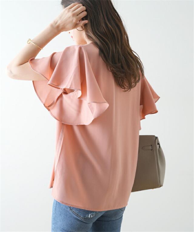 セール ブラウス 半袖 レディース シャツ トップス 切替 カットソー フリル 流行り 通勤 春夏 Tシャツ 柔らかい チュニック