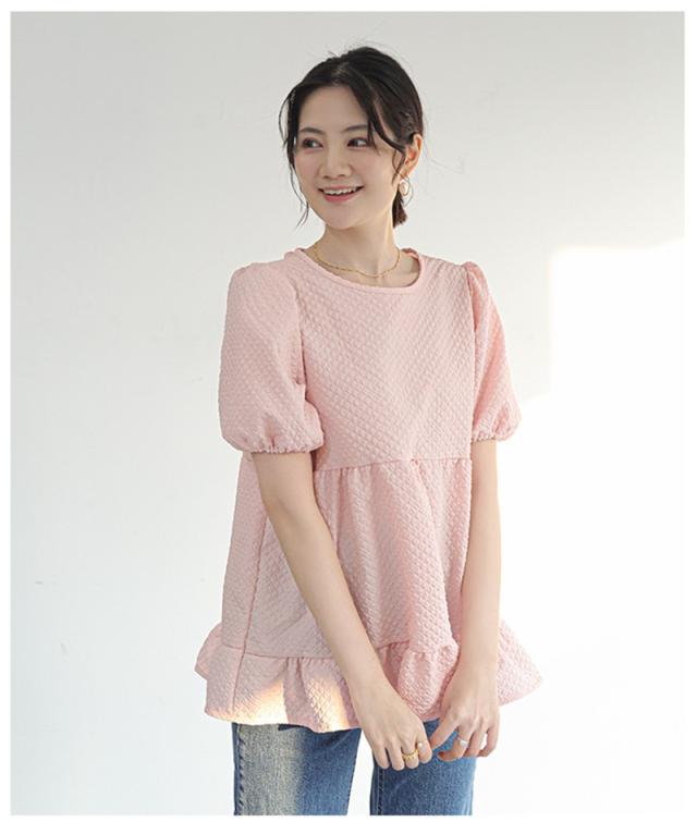 セール ブラウス 半袖 レディース シャツ トップス 切替 カットソー ぽわん袖 流行り 通勤 夏 Tシャツ ギャザー チュニック