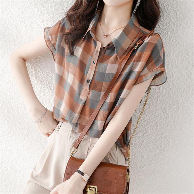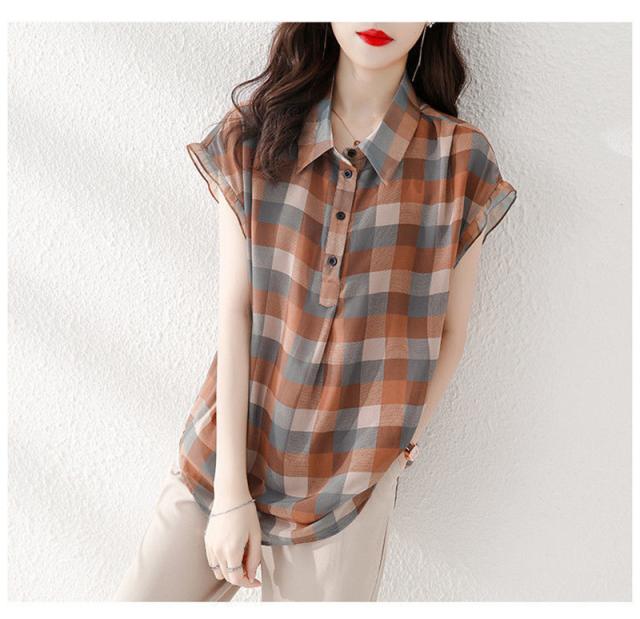 セール ブラウス 半袖 レディース シャツ トップス 切替 カットソー 重ね着 通勤 春夏 Tシャツ 柔らかい チュニック チェッ