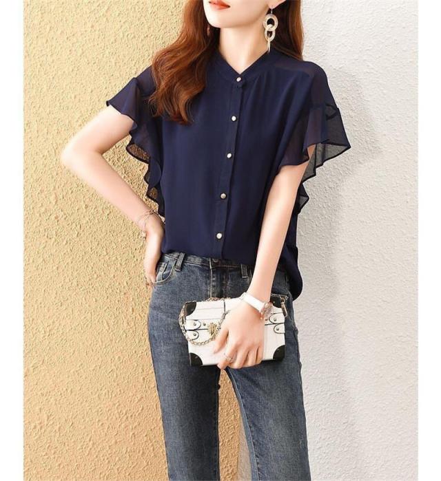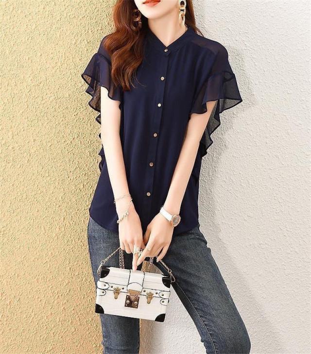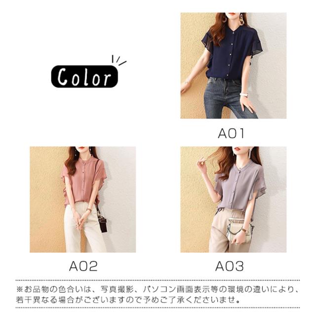 セール ブラウス 半袖 レディース シャツ トップス 切替 カットソー フリル 流行り 通勤 春夏 Tシャツ 柔らかい チュニック