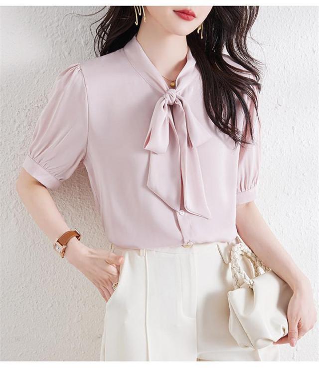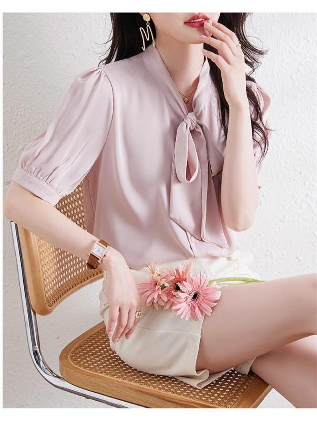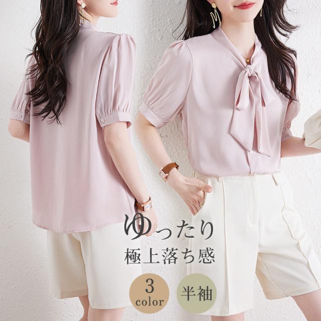 セール ブラウス 半袖 レディース シャツ トップス 切替 カットソー 重ね着 リボン 通勤 春夏 Tシャツ 柔らかい チュニック