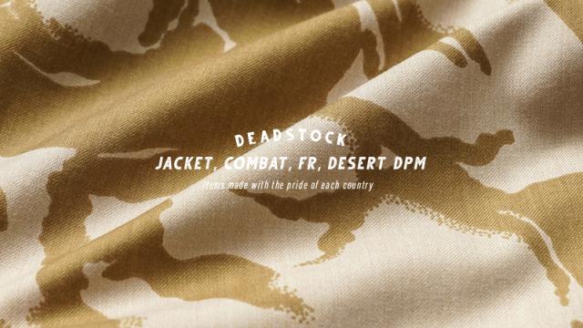 イギリス軍実物放出のFR(FIRE RESISTANT)COMBAT ジャケットです。デザートDPMカモ柄は本来は砂漠地帯での使用を目的とした迷彩柄で、こちらはFR(FIRE RESISTANTまたはFLAME RETARDANT)と呼ばれる難燃素材が使用されているコンバットジャケットです。難燃性のビスコース繊維であるFR VISCOSE(FRビスコース)50%、こちらも難燃繊維のKermel(ケルメル)49%、さらに帯電防止繊維1%という様々な繊維を混紡させた素材を使用しています。