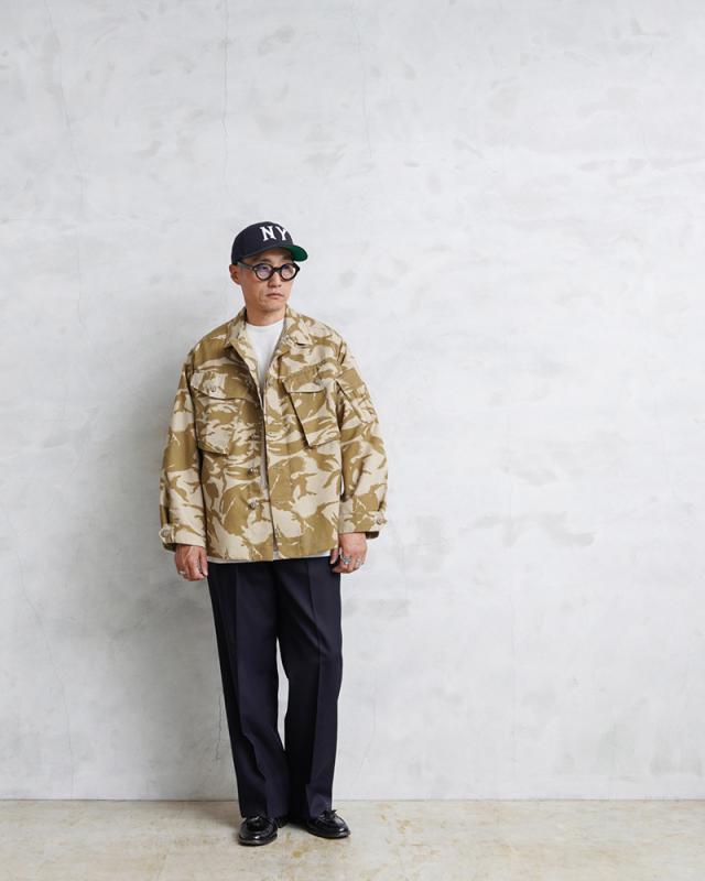 | 商品説明 | 実物 新品 イギリス軍 FR(FIRE RESISTANT)COMBAT ジャケット デザートDPMカモのご紹介です。 制式名称:JACKET,COMBAT,FR イギリス軍実物放出のFR(FIRE RESISTANT)COMBAT ジャケットが入荷しました。 デザートDPMカモ柄は本来は砂漠地帯での使用を目的とした迷彩柄で、こちらはFR(FIRE RESISTANTまたはFLAME RETARDANT)と呼ばれる難燃素材が使用されているコンバットジャケットです。 難燃性のビスコース繊維であるFR VISCOSE(FRビスコース)50%、こちらも難燃繊維のKermel(ケルメル)49%、さらに帯電防止繊維1%という様々な繊維を混紡させた素材を使用しています。 Kermel社の高機能アラミド難燃繊維Kermel(ケルメル)は軍隊・警察・消防の現場の要望に応えた画期的な素材です。火や熱、化学物質にも高い保護性能を発揮し、洗濯やタンブラー乾燥を行ってもその機能性を永久に維持します。優れた耐熱性素材として有名なNOMEX(ノーメックス)も同系統のアラミド繊維に属します。 90年代に湾岸戦争の開戦とほぼ同時期に実戦投入されたカモフラージュパターンのDPM(Disruptive Pattern Material)は、イギリス軍や他国の軍隊でも使用されるウッドランド系のカモ柄やこちらのデザートカモ柄を使用した分裂迷彩柄を意味するカモフラージュパターンです。 フロントはファスナーとボタンで開閉するデザインで、フロントに立体的なデザインのフラップポケットが2つとポケット内部にもペンホルダー付きで、左袖にもクッション性に優れたフラップ付きのペンホルダーが付属しています。袖はボタンで調節可能で、全てのボタンはパラシュートボタン(スロットボタン)が採用されています。襟の裏側にはベルクロ付きのチンストラップが付属していますので、スタンドカラーでも着用可能です。 温暖な気候での使用を想定して作られたジャケットなので、薄手で通気性も良く、タウンユースで着ても雰囲気が良く、難燃繊維を使用したシャツ感覚で着れるジャケットなので、火を使うキャンプやアウトドアでもその機能性を最大限に発揮します。もちろん現在では製造されていない希少アイテムです! | ||||||||||||||||||||||||||||||
