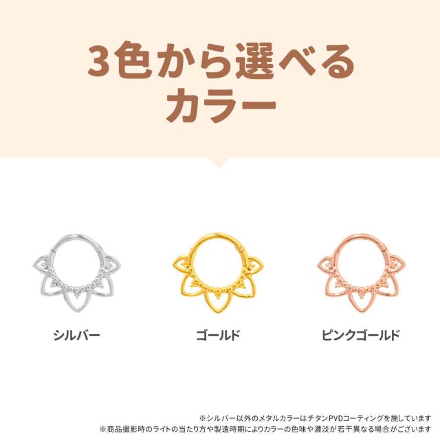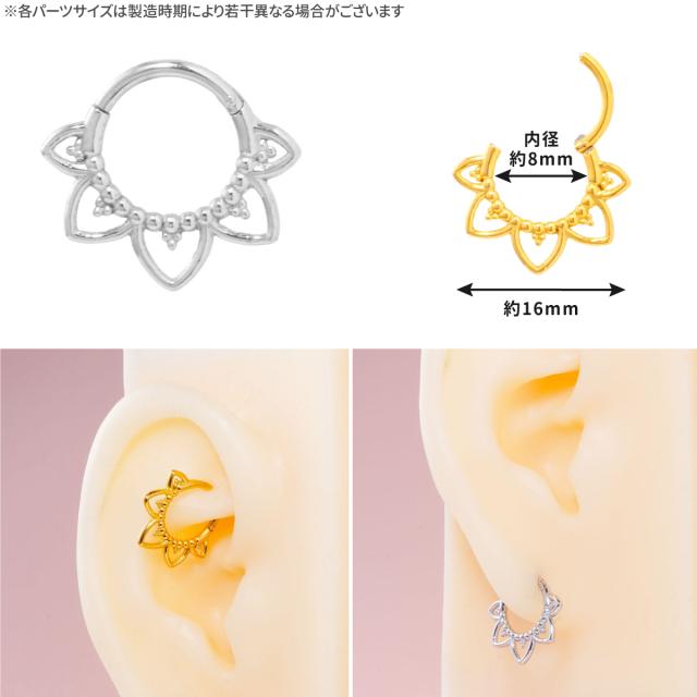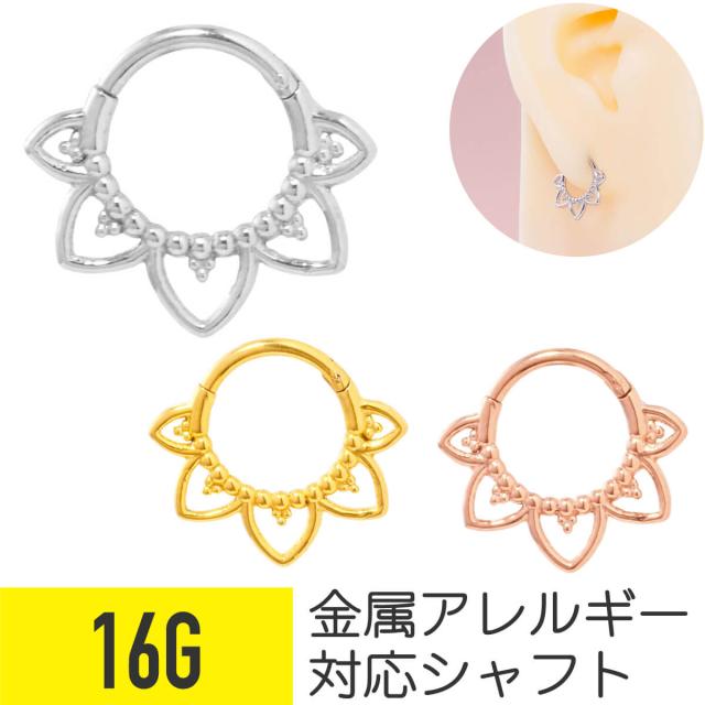 ロータス ワンタッチ セグメントリング 16G サージカルステンレス ヘリックス 軟骨ピアス ボディピアス クリッカー フープピアス 蓮 花