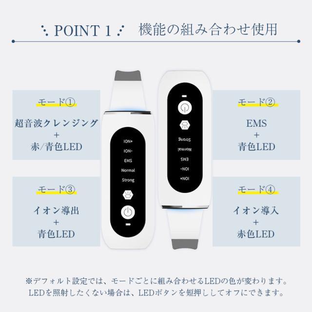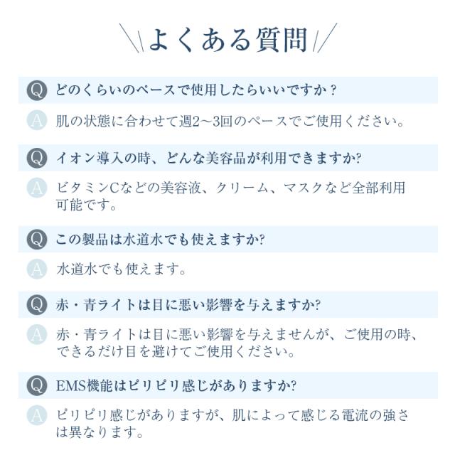 主な機能:超音波、イオン導出/導入、EMS、赤/青色LED。