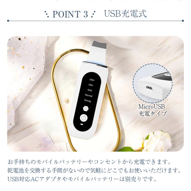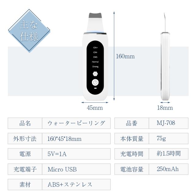 【パッケージ内容】ウォーターピーリング本体×1、Micro充電ケーブル×1、日本語取扱説明書×1。