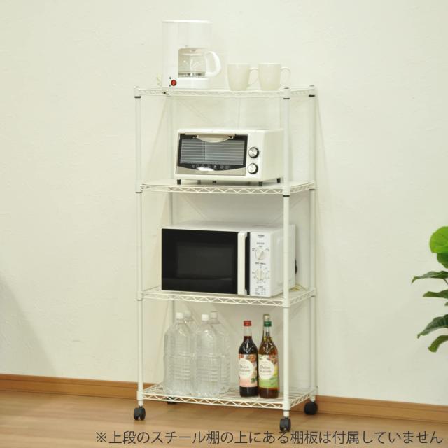 スチールラック 4段 キャスター付 幅60cm ( ラック 収納棚 シェルフ スチール リビング収納 収納 レンジ台 収納ラック 飾り棚 棚 ディスプレイラック スチール製 キャスター 可動棚 )