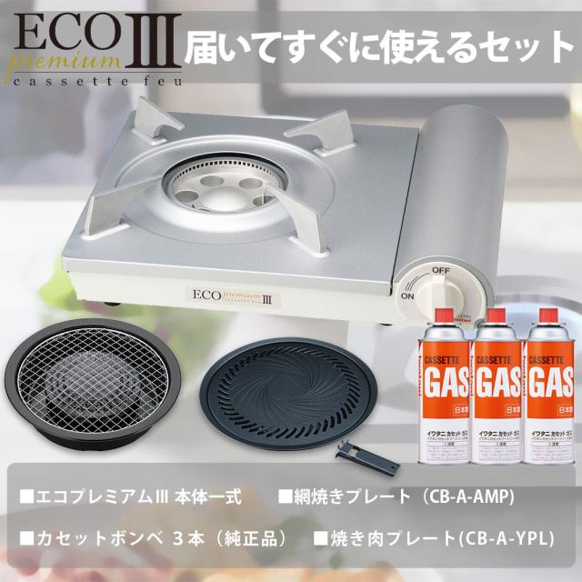 イワタニ カセットコンロ エコプレミアム3 ホワイト CB-EPR-3 焼肉プレート 網焼きプレート ガスボンベ 3本セット カセットガスコンロ