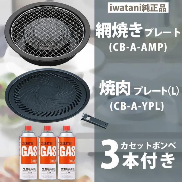 網焼きプレート、焼肉プレート、カセットガス3本のセット商品です