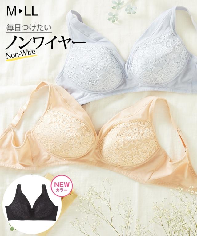 ブラジャー ノンワイヤー レディース まいにち着けたい サックス/ベージュ LL/3L ニッセン nissen agesugi_sfa