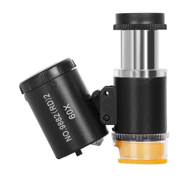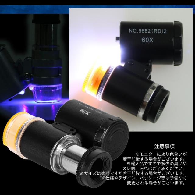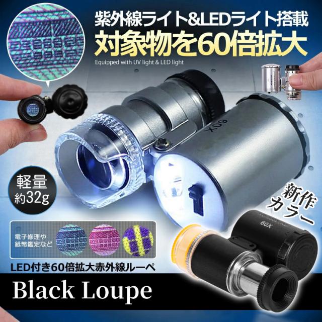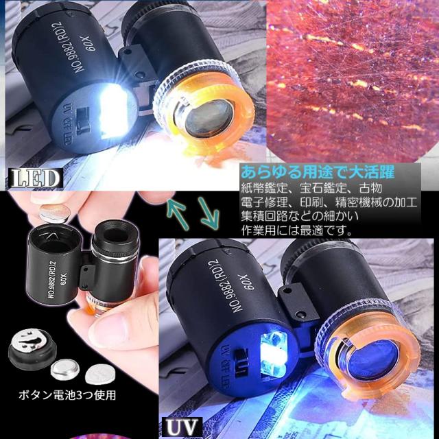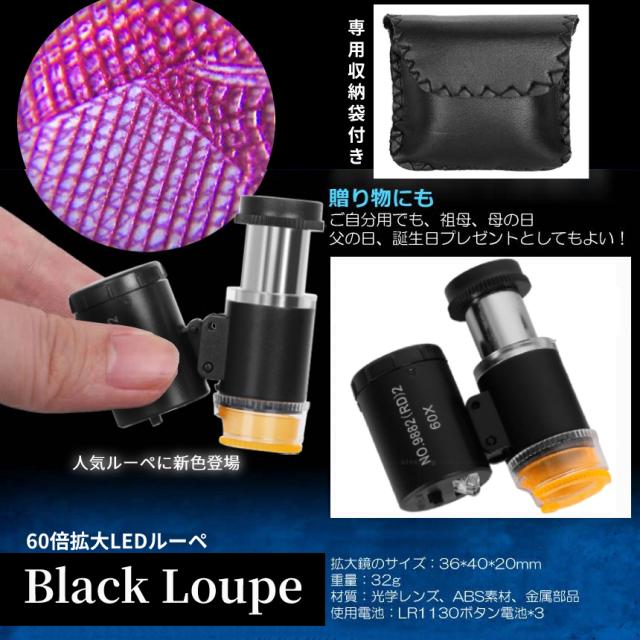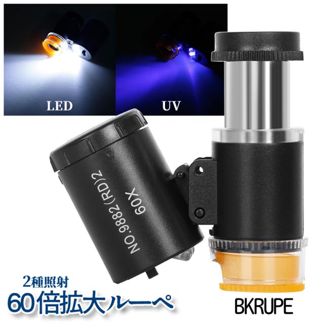 60倍 拡大 小型 ルーペ LED ライト 紫外線 UV マイクロ スコープ ブラックライト 虫眼鏡 作業 顕微鏡 鑑定 研究 校正 校閲 宝石 携帯 軽量 ミニ BKRUPE 送料無料
