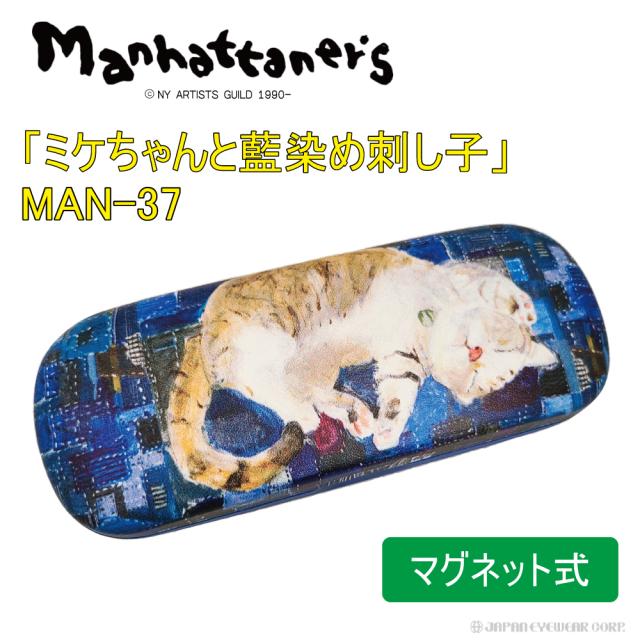 メガネケース ネコ マンハッタナーズ メガネケース MAN-37 ミケちゃんと藍染め刺し子 Manhattaner’s めがね ケース ねこ 猫 プレゼント かわいい 眼鏡