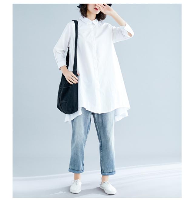 チュニック シャツワンピース ロングシャツ レディース 長袖 シャツ 綿麻 オーバーサイズ ロング丈 無地 シンプル 着痩せ 体型
