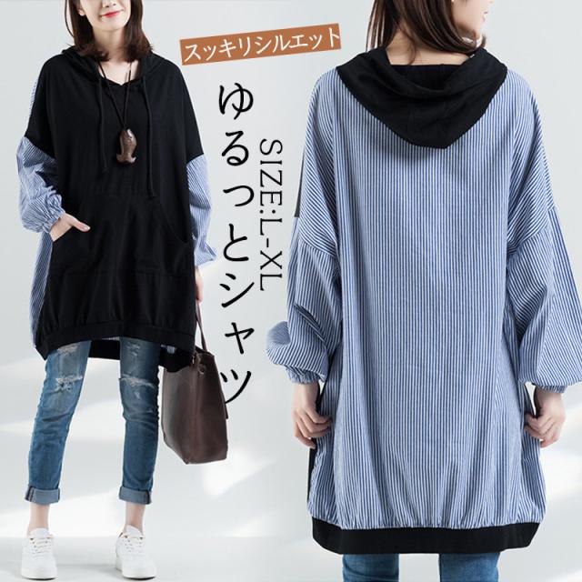 チュニック シャツワンピース ロングシャツ レディース 長袖 ブラウス ストライプ柄 Aライン 体型カバー 着痩せ ゆったり マタ