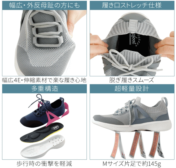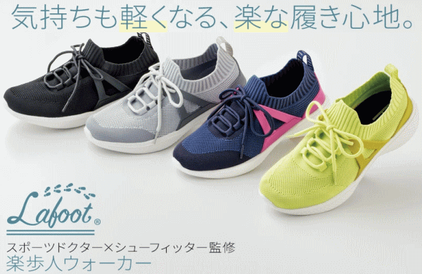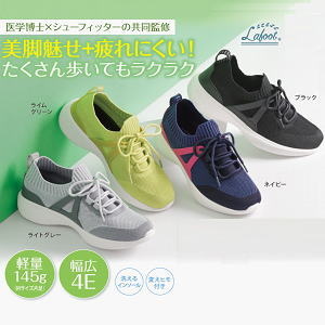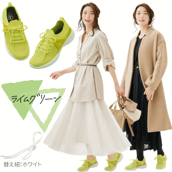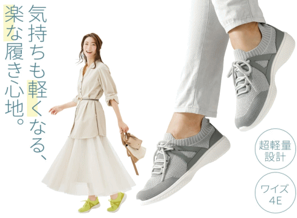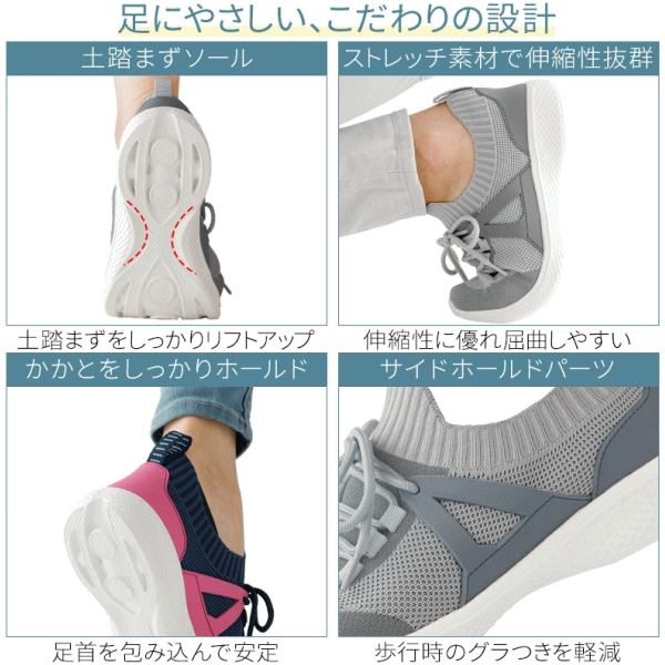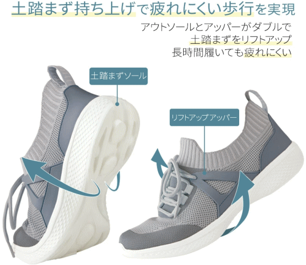 医学博士×シューフィッター監修、美脚魅せ+疲れにくい!たくさん歩いてもラクラク。医学博士 勝野浩とシューフィッター當山アイ 足の専門家が共同開発。まるで靴下のようなフィット感!伸縮素材なので母趾が痛くなりにくく脱ぎ履きがスムーズ。医学博士監修のインソールで長時間歩行でも足が疲れにくい。アウトソールとアッパーがダブルで土踏まずを持ち上げるので疲れにくい+足もとスッキリ細魅せ効果。多重構造で足への衝撃を吸収。軽量約145g(※片足Mサイズ)。替えひも付き。■サイズ【レディース】S:22.5〜23.0cm、M:23.5〜24.0cm、L:24.5〜25.0cm【メンズ】M:26.0〜26.5cm、L:27.0〜27.5cm■材質[生地:]ポリエステル/ポリウレタン[底材]合成底■カラー:ブラック、ライトグレー、ネイビー、ライムグリーン■生産国:中国製(企画・デザイン:日本)