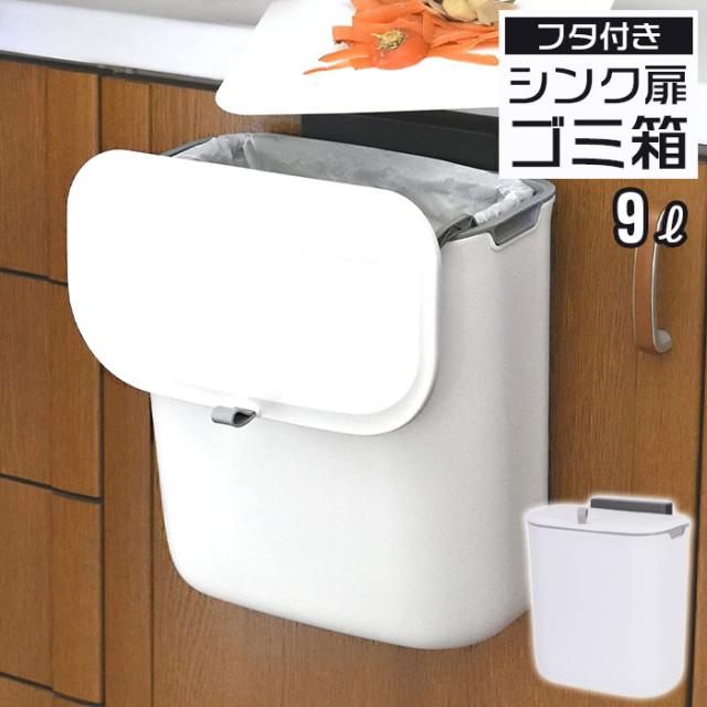 【値下げ】シンク 扉 ゴミ箱 ふた付き 9L ホワイト 壁掛け 吊り下げ ごみ箱 キッチン ゴミ箱 生ゴミ入れ 三角コーナー コバエ 小さい 蓋付き ふたつき おしゃれ 小さい 卓上 スクエア シンプル 洗面所 台所 トイレ