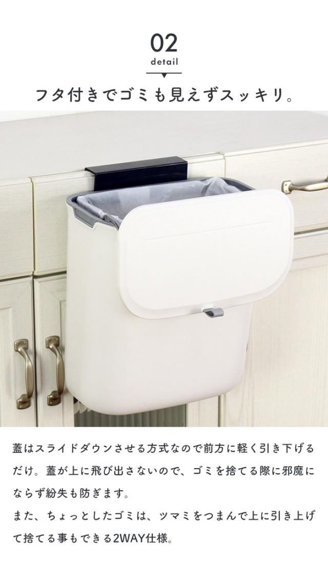 壁掛け ゴミ箱 ふた付き 吊り下げ シンク 扉 ごみ箱 スライダー式 ぶら下げゴミ箱 シンク扉ゴミ箱 キッチン ドア 扉 シンプル おしゃれ ホワイト 白 携帯ゴミ箱 キッチンキャビネット 9L ポリ袋 生ごみ ダストボックス ミニゴミ箱