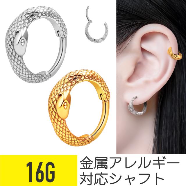 スネーク ワンタッチ セグメントリング 16G サージカルステンレス ヘリックス 軟骨ピアス ボディピアス クリッカー フープ 蛇 ヘビ