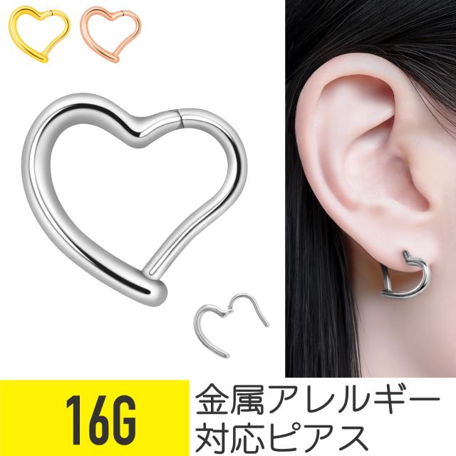 ハート フープ ワンタッチ セグメントリング 16G サージカルステンレス ヘリックス 軟骨ピアス ボディピアス クリッカー 着脱簡単