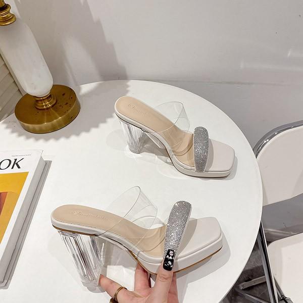 【レビュー投稿で+5%還元】クリアサンダル 厚底 チャンキーヒール 太ヒール 変形 12cm 春夏 歩きやすい 大きいサイズ 美脚 ハイヒール 身長アップ 脚長 美脚 脚長 安定感 ふかふか フェミニン 白 黒 22.0 22.5 23.0 23.5 24.0 24.5 25.0 cs038s1
