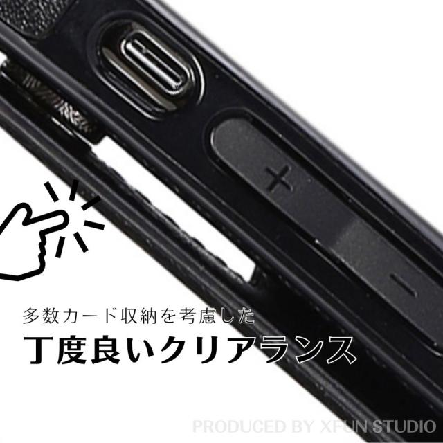 ・カメラが大きい機種(iPhone 14Pro、iPhone 14ProMax、iPhone 13Pro、iPhone 13ProMax、iPhone12mini、iPhone13miniなど)のカード収納スロットは3ヶ所までとなります。カメラが小さいの場合のカード収納スロットは4ヶ所あります。
