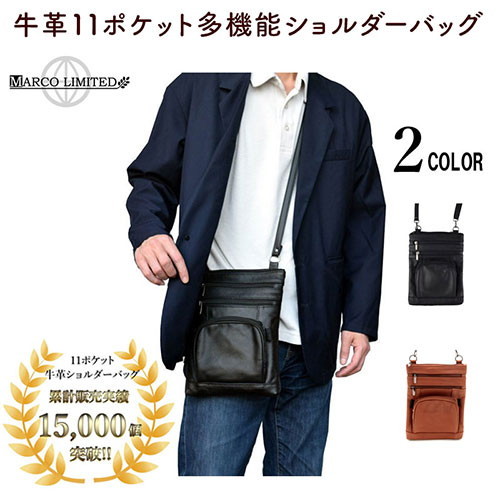MARCO、Limited、牛革11ポケット多機能ショルダーバッグ