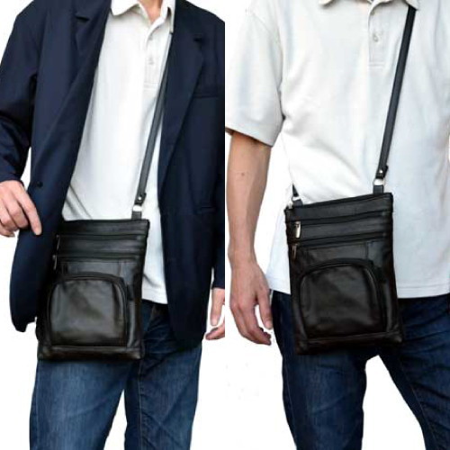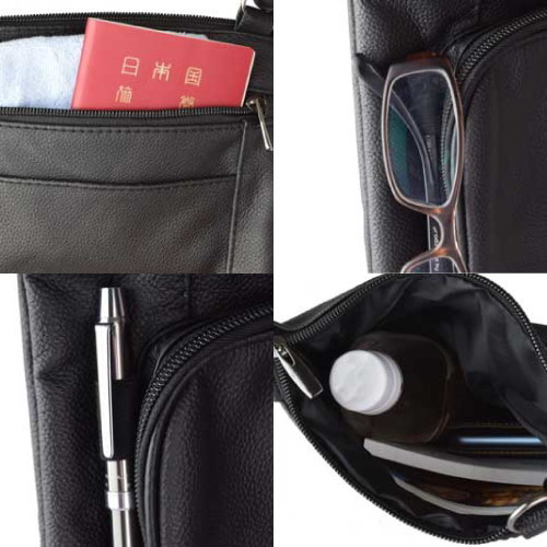 500mlのペットボトルも収納可能な広々メインポケット!財布、本、携帯電話、双眼鏡など、サッと取り出したいものをたっぷり収納可能。牛革11ポケット多機能ショルダーバッグ