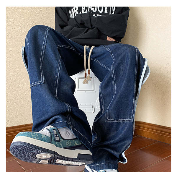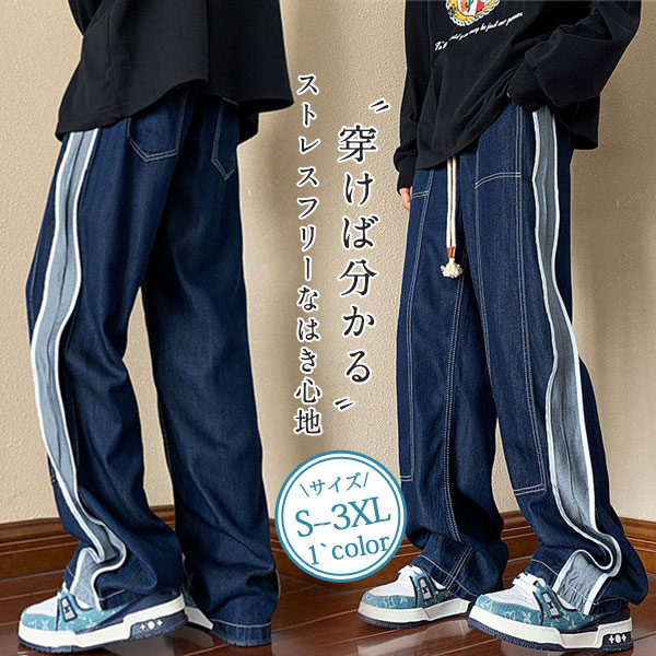 デニムパンツ メンズ ボトムス ジーンズ ジーパン かっこいい ゆったり ワイドパンツ ロング丈 ストリート系 カジュアル 学生