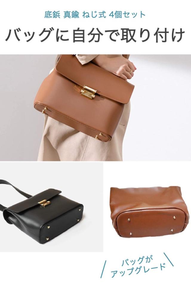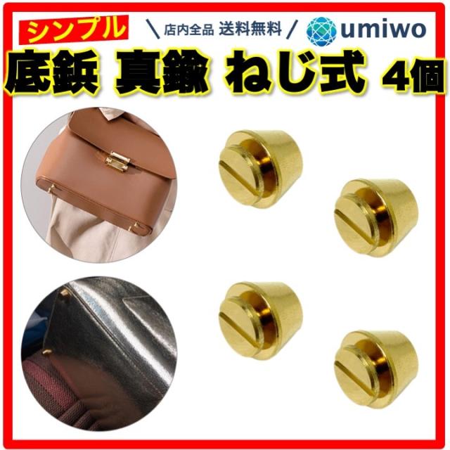 商品名:底鋲 真鍮製 ねじ式 4個セット 直径1.2cm スタッズ レザークラフト パーツ ハンドクラフト バッグ レザー 台形 底 汚れ 防止 簡単 取り付け シンプル