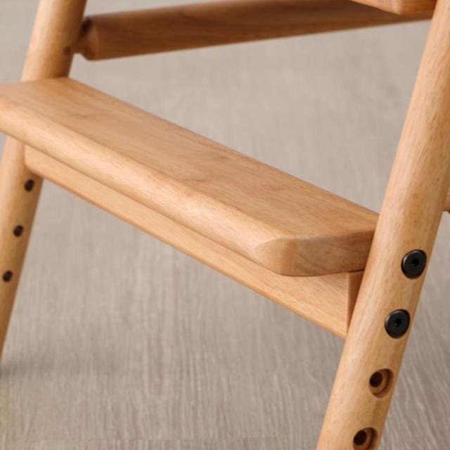 足置きは約3cmピッチ・4段階で調節可能です。足をブラブラさせたり姿勢が悪くならないように、ちょうど良い高さで脚をしっかりと支えます。