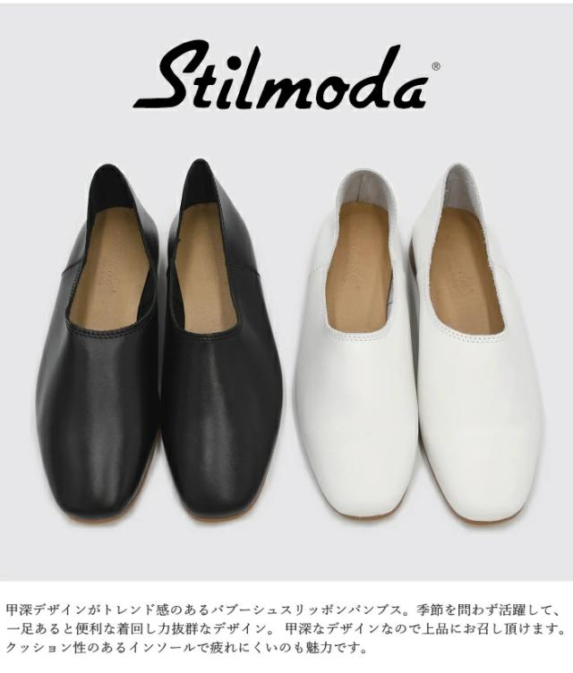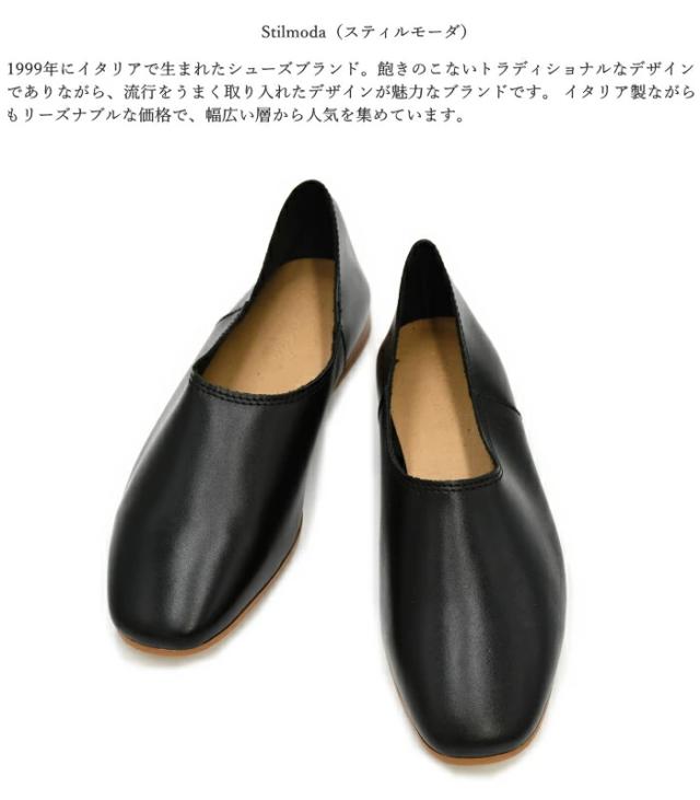 Stilmoda スティルモーダ フラットパンプス 5404 st5404 イタリア製 甲深 パンプス バブーシュ ブラック ホワイト バレエシューズ ぺたんこ靴 レディース 靴