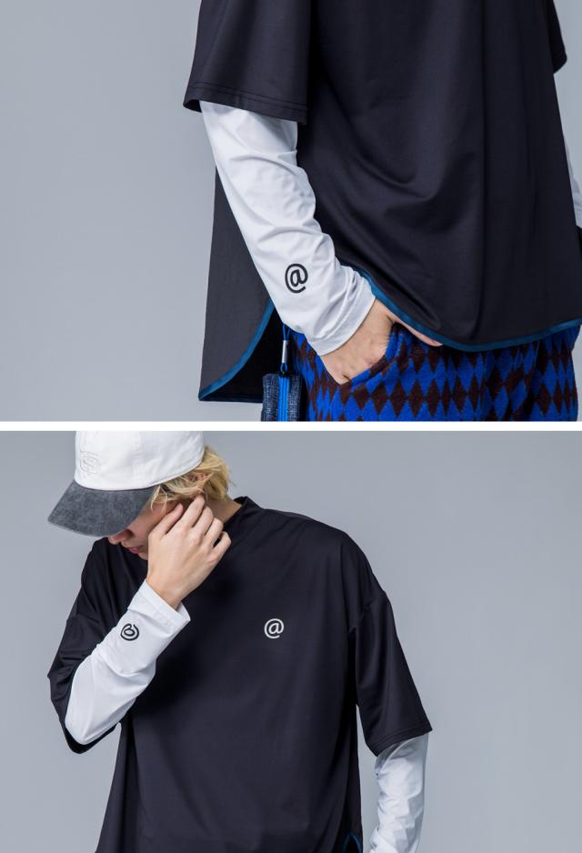 zst-00016 トップス 長袖 接触冷感 UVカット インナーシャツ カットソー ロンT インナー 重ね着 レイヤード 薄手 プルオーバー 伸縮 ストレッチ ワンポイント ロゴ シンプル