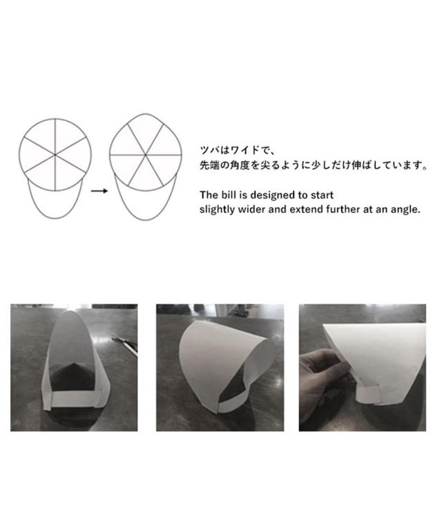 ・先端の角度が少し尖った形状のワイドなツバ。
