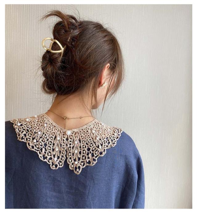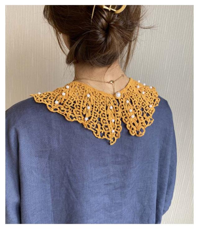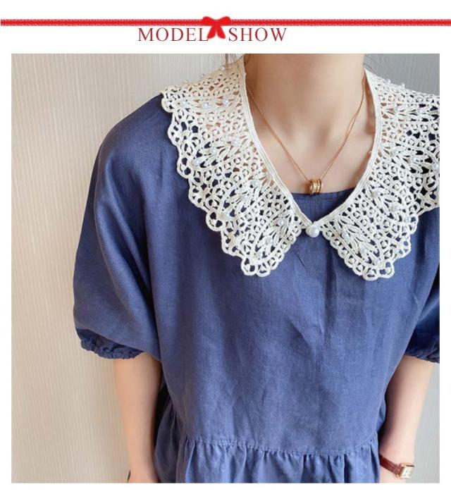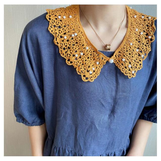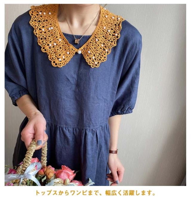 | ボタンで着脱のパール付きのレースの付け襟。 大きめの襟は華やかなアクセントになり、いつもと違ったコーデを楽しめます♪ ナチュラルコットン素材で、レトロムードもますます高まります。 丸襟のデザインも清楚で可愛さを演出してくれます。 トップスからワンピまで、幅広く活躍します。 | |