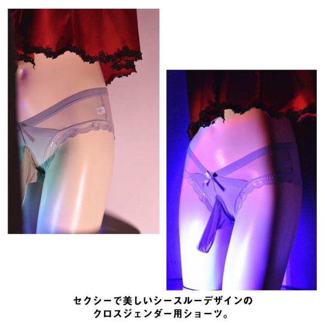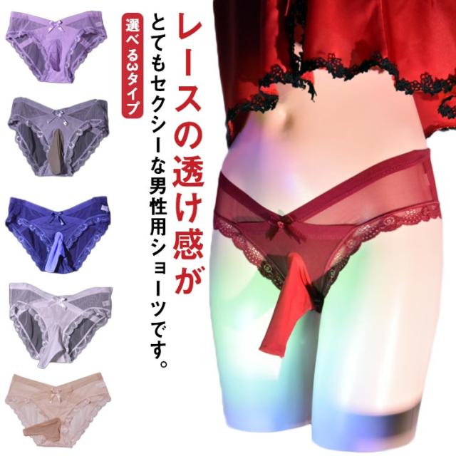 選べる3タイプ ジェンダレスショーツ メンズ セクシー レースショーツ Xジェンダー シースルー クロスジェンダー パンティ 男性用 女装用 先閉じ 先開き たまご型 全9色 メンズ下着 インナー 透け感 乙女男子 パンティー SEXY