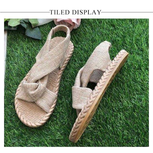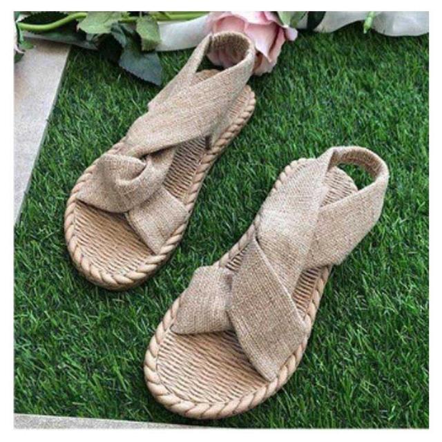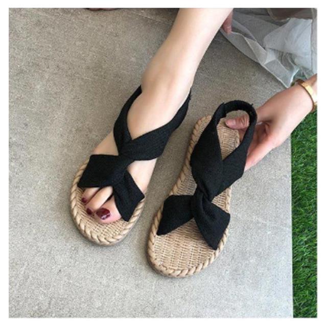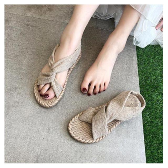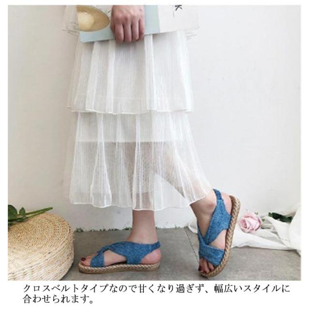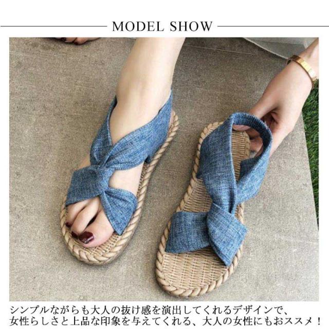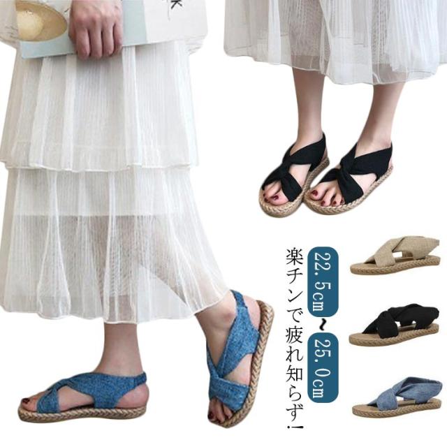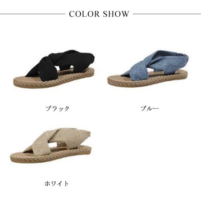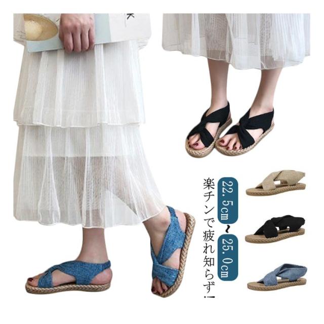 サンダル クロスベルト ぺたんこ 綿麻 ベルトサンダル ストラップサンダル サンダル 可愛い レディース 靴 シューズ ビーチサンダル 夏 トレンド ゴムストラップ 滑り止め 歩きやすい ローヒール 美脚靴 ヒール2CM