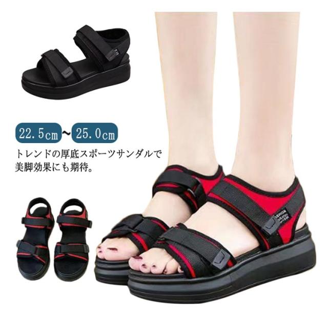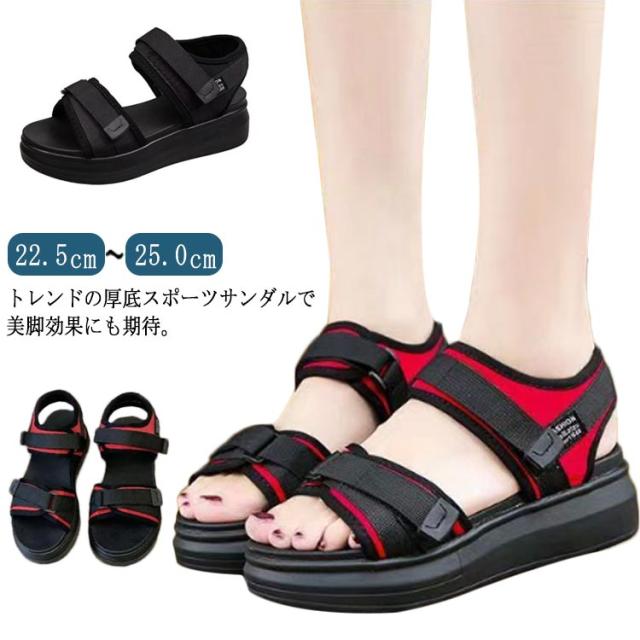 スポーツサンダル 厚底サンダル ストラップサンダル アウトドア メッシュサンダル 登山サンダル フラットサンダル メンズ レディース 厚底 ヒール コンフォートサンダル 黒 白 アウトドア 歩きやすい かわいい 夏用 通気性 22.5-25cm 送料無料