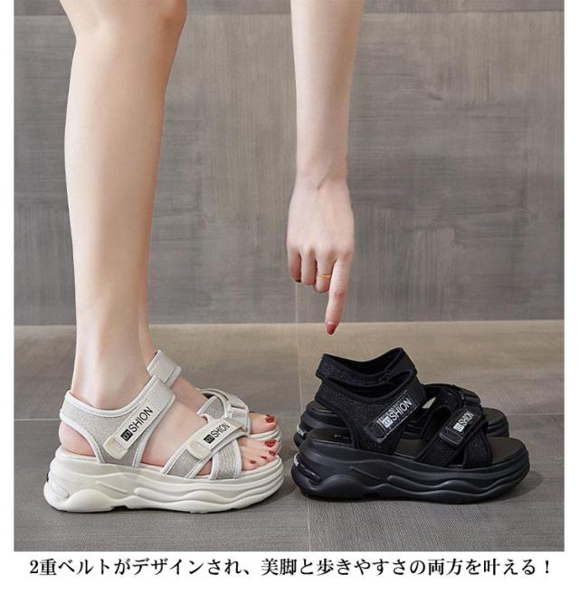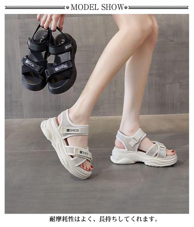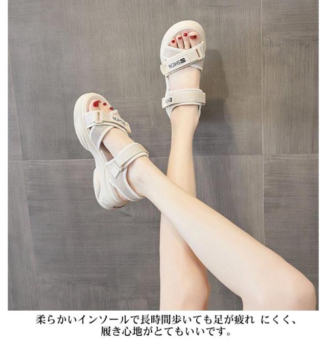 厚底サンダル コンフォート ビーチサンダル 軽量 スポーツサンダル 厚底 レディース サンダル ビーチサンダル 厚底靴 靴 ベルクロ スニーカー スポーツ サンダル 歩きやすい アウトドア 美脚効果 カジュアル サンダル シューズ スポサン