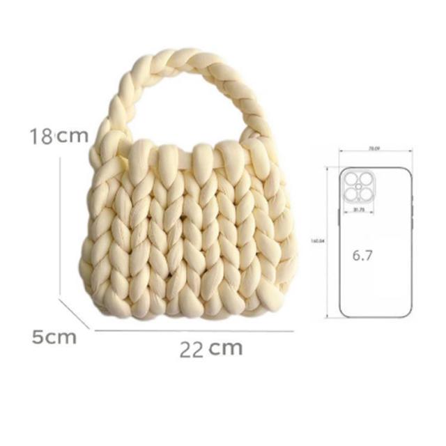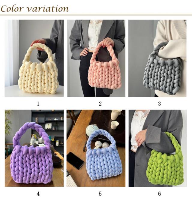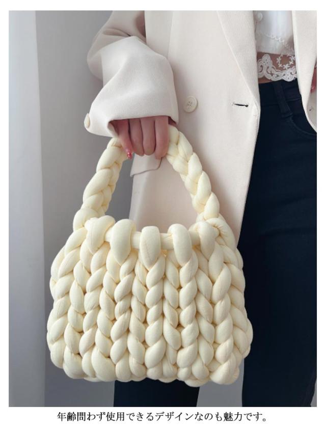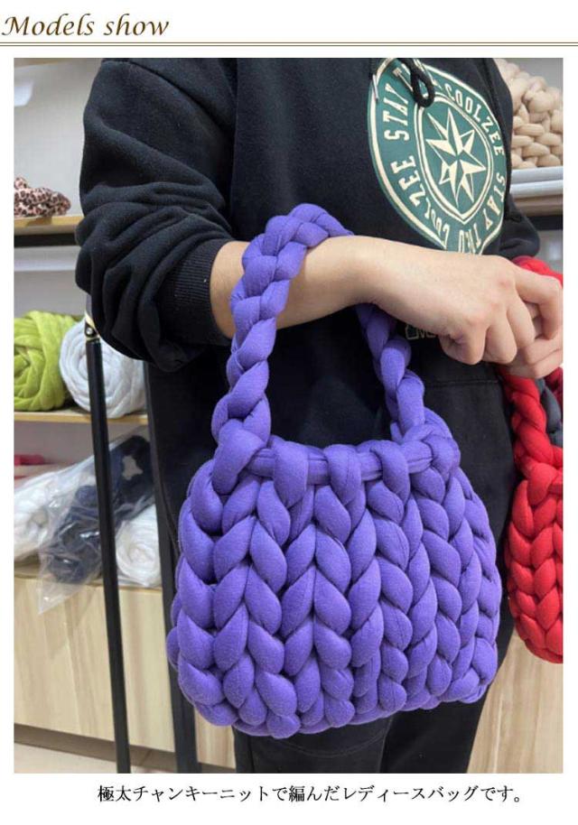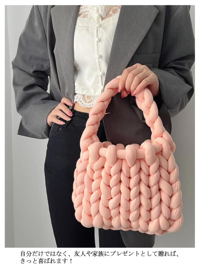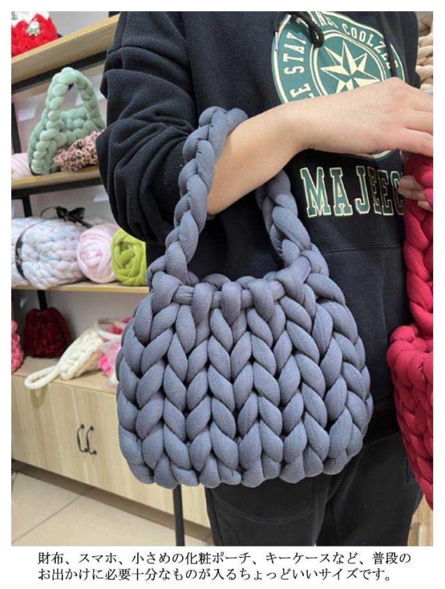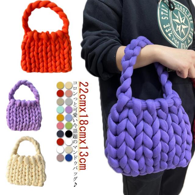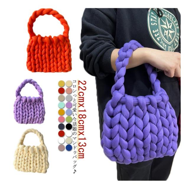 マンドゥバッグ チャンキーニット 毛糸 バッグ 完成品 ハンドバッグ レディース もこもこ ミニトートバッグ 極太毛糸編み トートバッグ 手提げ カバン 毛糸バッグ 韓国ファッション SNS インスタ映え プレゼント 送料無料 全20色