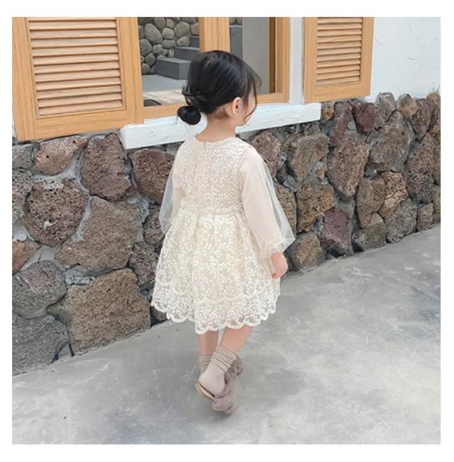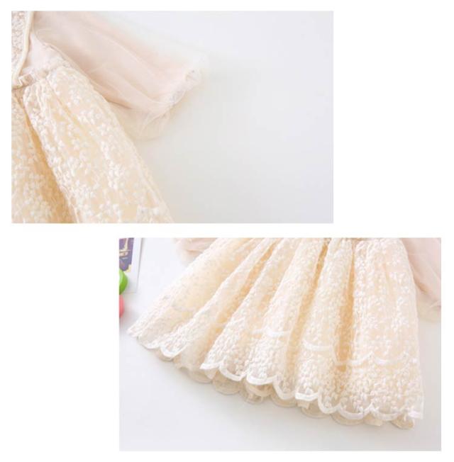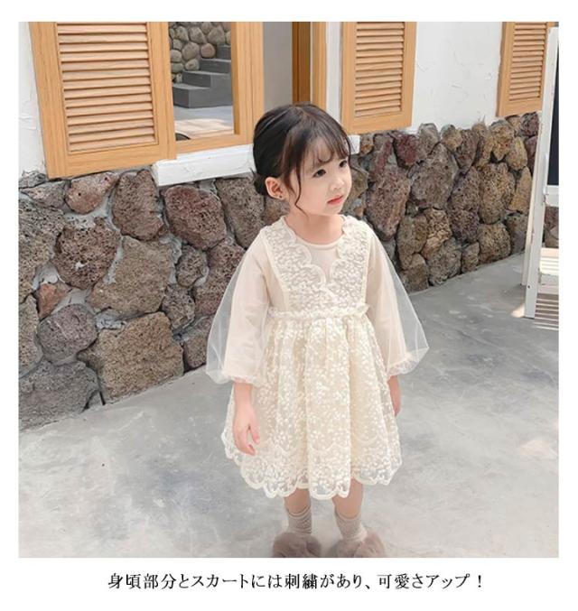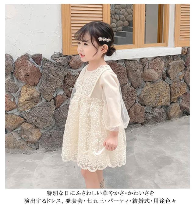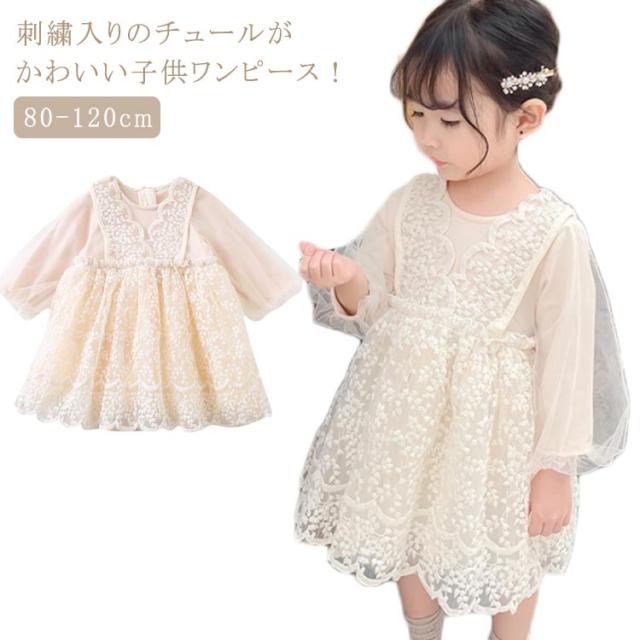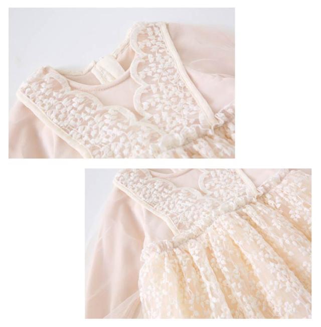 送料無料 子供 ドレス ベビードレス 長袖 結婚式 ワンピース セレモニー ドレス 女の子 チュール レース ベージュ お宮参り ピアノ発表会 お誕生日 刺繍 バースデー ギフト 出産祝い 退院 結婚式 記念撮影 プリンセス パーティー 七五三 発表会 入園式