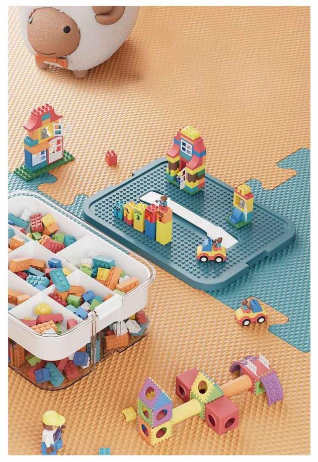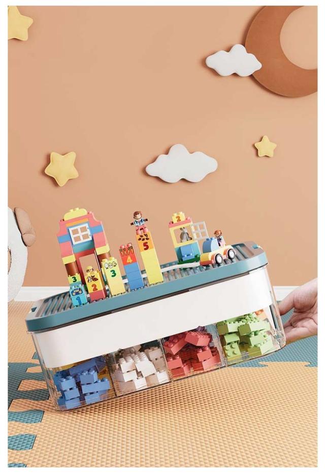 | 散らばりがちなブロックなどの小物を整理・収納! 取り外し可能なトレーで、種類や使用頻度での整理がらくらく! 同シリーズでスタックが可能。たくさんの省スペースで重ねて収納しておけます。 お子様のブロックはもちろん、ボタンやビーズなどの手芸用品、プラモデルやミニチュアなどの細かいパーツなどの収納に! フタ部分はお子様がブロック遊びに使える凸凹構造になっています。 | |