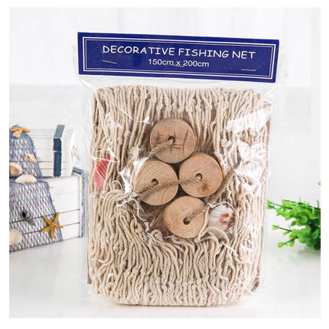 貝殻付き飾り漁網 1.5×2m 漁網 飾り漁網 壁掛けネット 装飾 綿糸 手作り 地中海風 ディスプレイネット インテリア雑貨 全2色