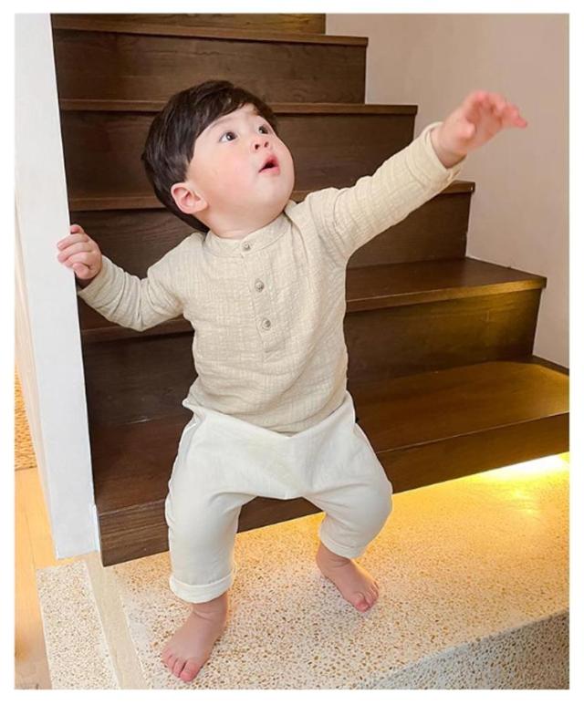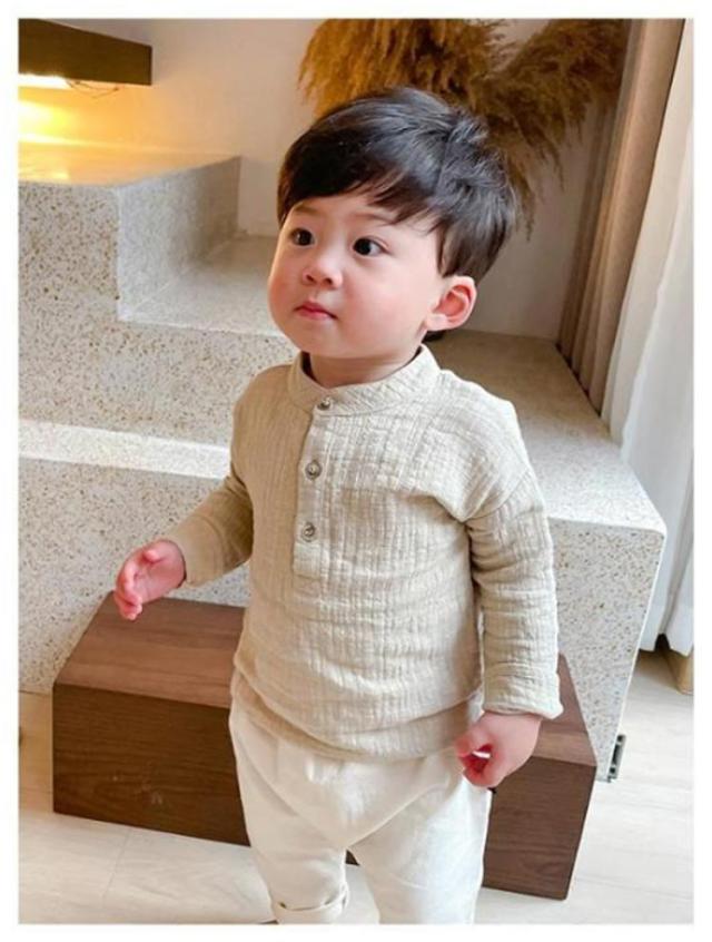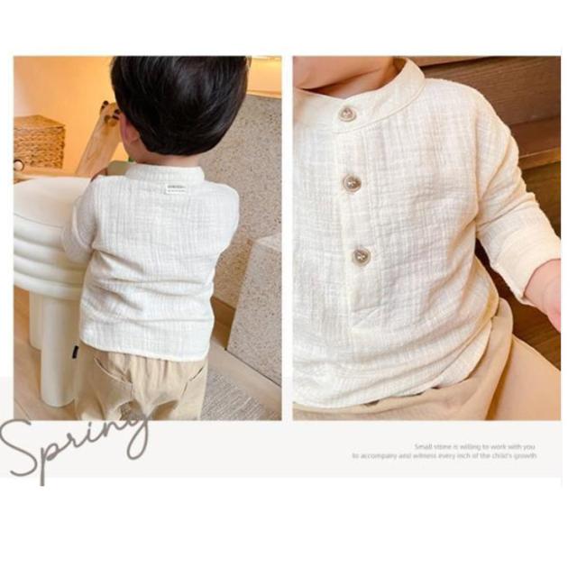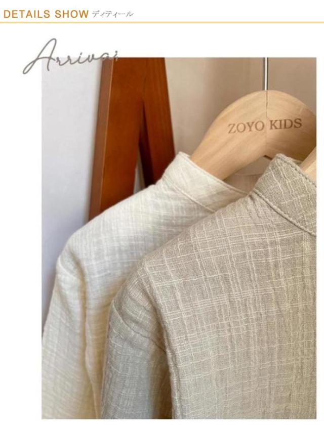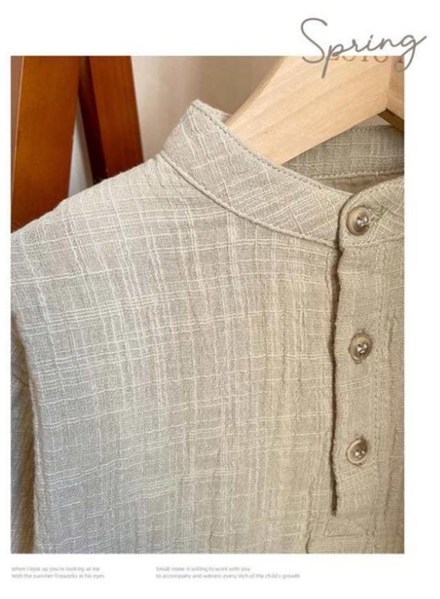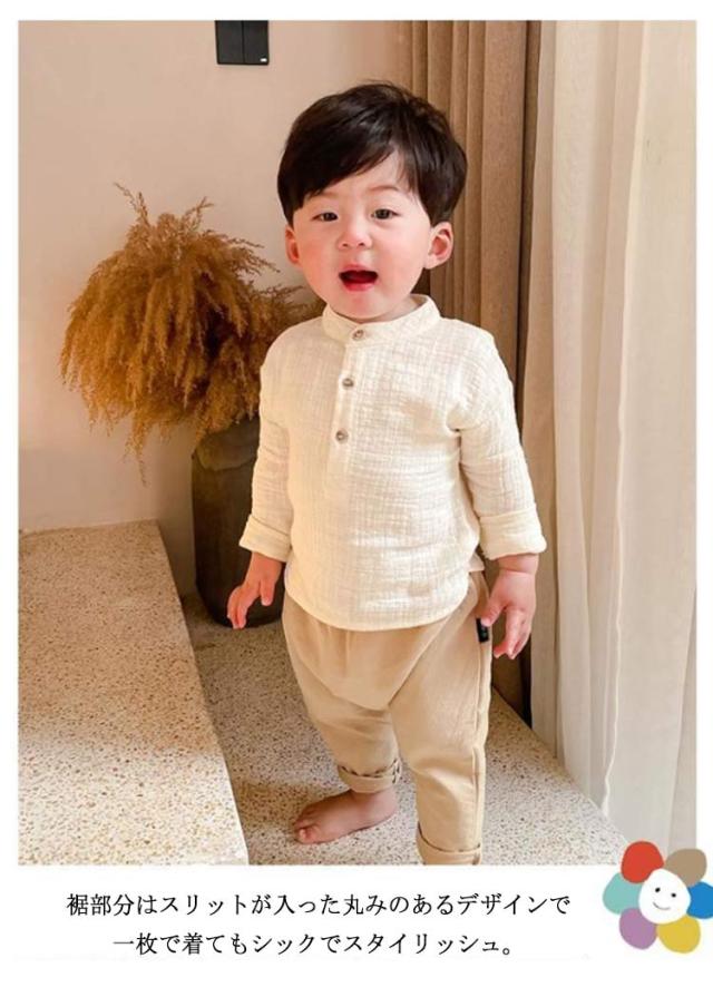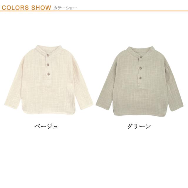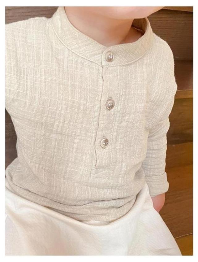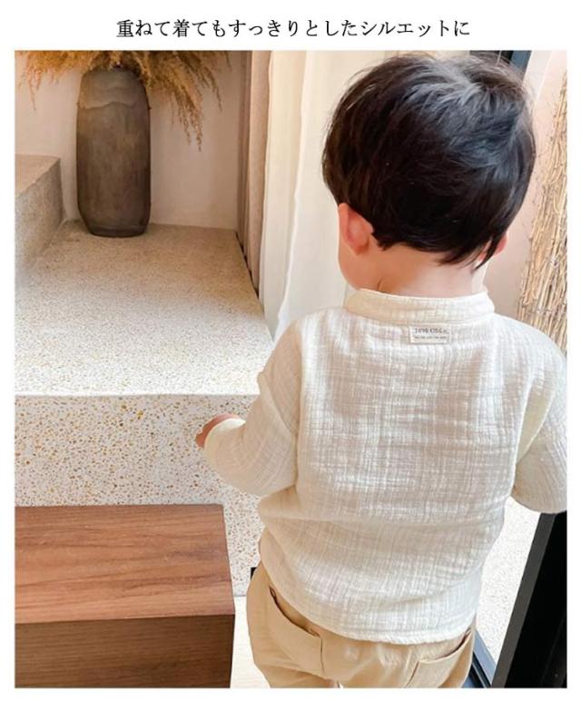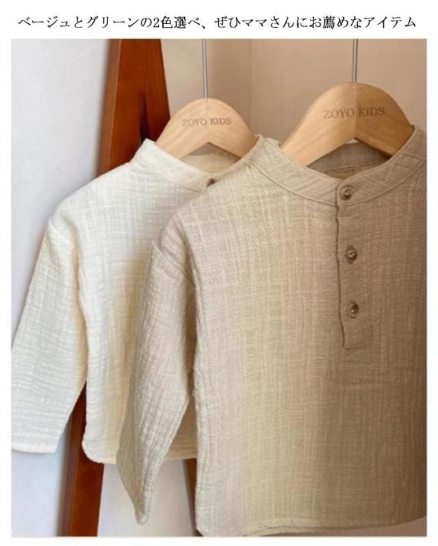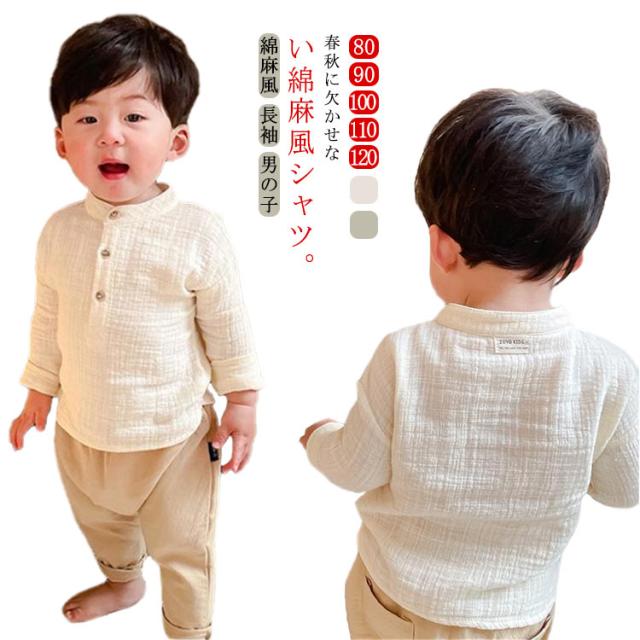 ベビーシャツ 子供服 シャツ ブラウス 送料無料 綿麻風 立ち襟 キッズシャツ 子供シャツ ベビー 赤ちゃん 長袖 男の子 トップス 春 夏 秋 シンプル 80 90 100 110 120cm